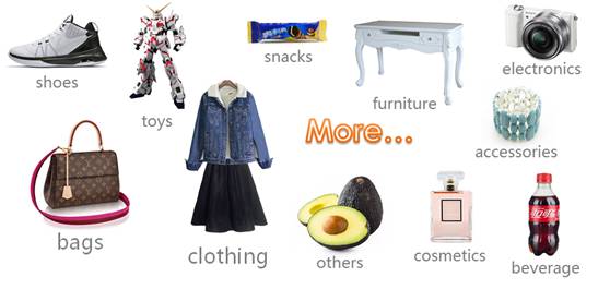 拍立淘目前覆盖几乎淘宝所有的实体类目:比如衣服,鞋,箱包,瓶饮,配饰,家具,电子,零食,美妆,水果等。