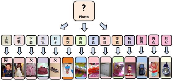 - 另外,在类目识别方面,为了进一步提高分类精度,我们采用层次化的类目识别: