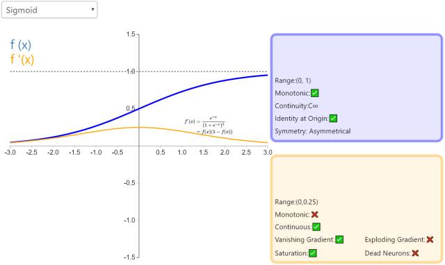 Sigmoid 因其在 logistic 回归中的重要地位而被人熟知,值域在 0 到 1 之间。Logistic Sigmoid(或者按通常的叫法,Sigmoid)激活函数给神经网络引进了概率的概念。它的导数是非零的,并且很容易计算(是其初始输出的函数)。然而,在分类任务中,sigmoid 正逐渐被 Tanh 函数取代作为标准的激活函数,因为后者为奇函数(关于原点对称)。