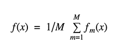 Bagging 是 bootstrap aggregation 的缩写。一种减小估计方差的方法是将多个估计值一起平均。例如,我们可以在不同的数据子集上训练 M 个不同的树(随机选择)并计算集成结果: