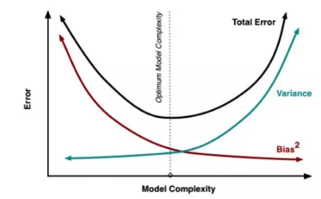 目标函数Obj(θ)两部分组成:误差函数L(θ)和复杂度函数O(θ)。我们学习的目标肯定是损失偏差尽量小,函数尽量不复杂。复杂度高意味模型过拟合风险高。其实最终我们关注的是泛化误差(TotalError)大小,即偏差(Bias)和方差(Variance)之间的平衡点。偏差(Bias)度量了学习算法的期望预测与真实结果的偏离程度,即刻画了学习算法本身的拟合能力;方差度量了同样数量的训练集的变动所导致的学习性能的变化,即刻画了数据扰动所造成的影响。