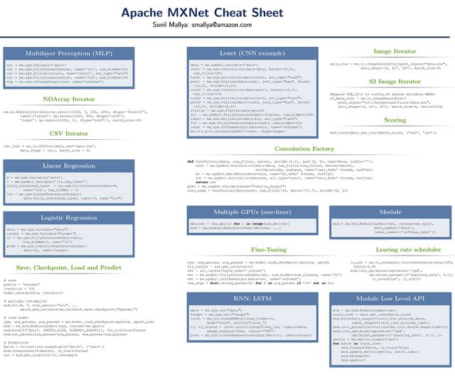 资源 | 一张速查表实现Apache MXNet深度学习框架五大特征的开发利用